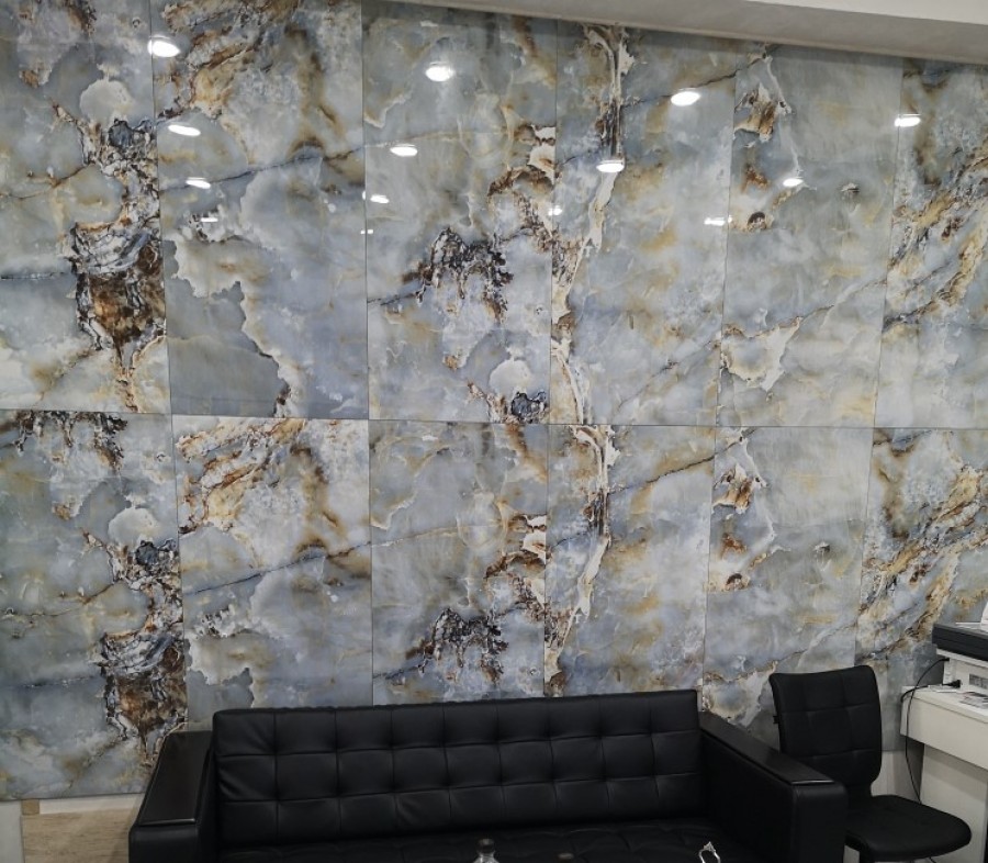 Плитка настенная 120x60 9мм Мэджик Айс зеркальный глянец 1.44 полированная голубой Realistik