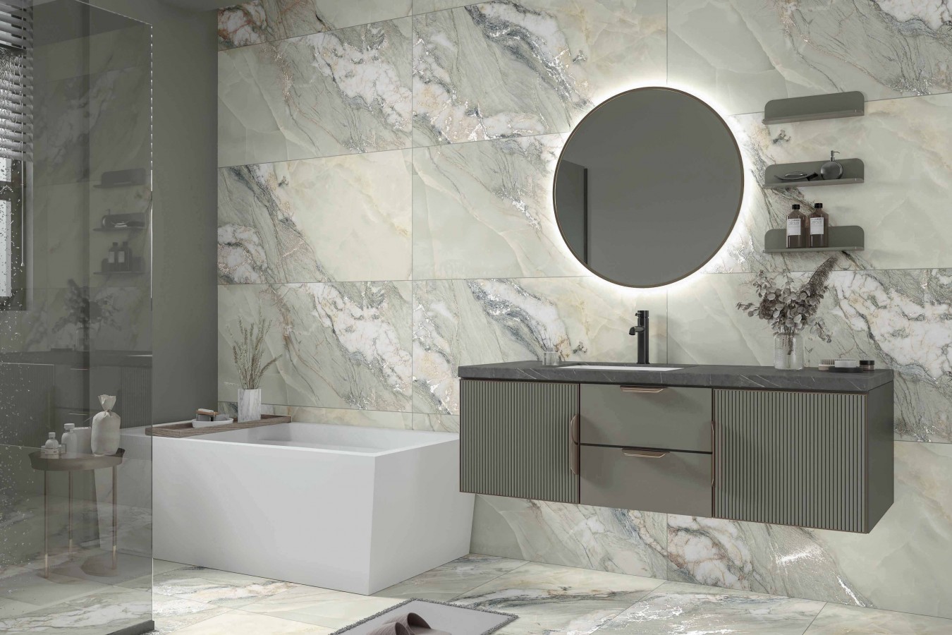Плитка настенная 120x60 8мм Оникс Эмеральд Гранде объемный карвинг 1.44 матовая бежевый Realistik