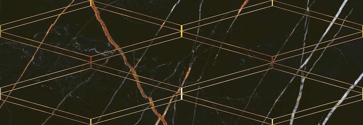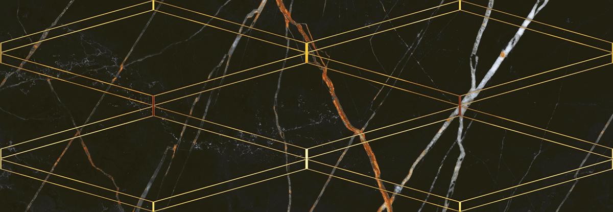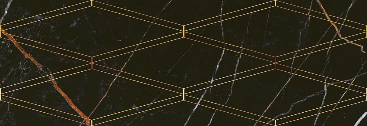Плитка Eletto Ceramica Золотой И Черный/black & Gold Black & Gold Rombi декор 70x24 глянцевая